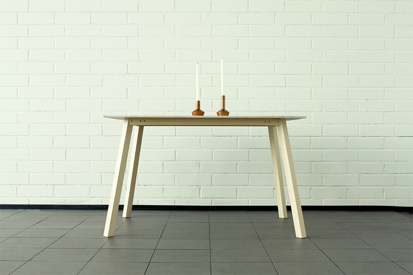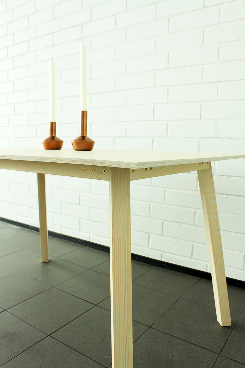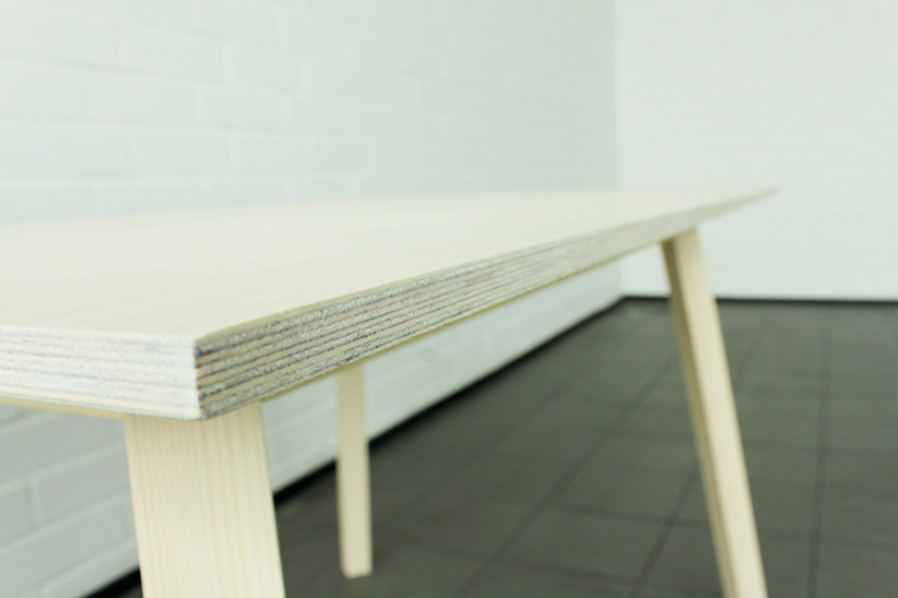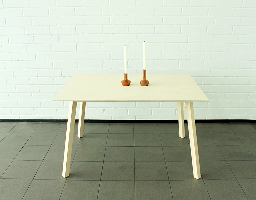 This birch plywood table was designed thinking of the simplicity of horizontal and diagonal lines. It’s a medium sized table where 6 persons can sit comfortably thanks to the position of the legs. It was a personal project in collaboration with designer Juan Pablo Manríquez.